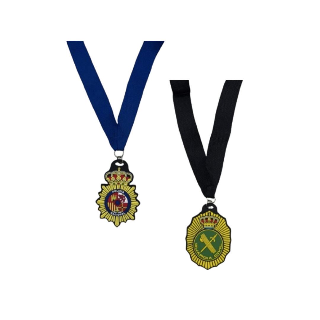 Disponible en diseños inspirados en Policía y Guardia Civil, cada placa incluye una cinta textil robusta que permite llevarla cómodamente al cuello. Su peso reducido y su material flexible la convierten en una opción perfecta para disfraces, recreaciones, exhibiciones, regalos conmemorativos o merchandising corporativo.